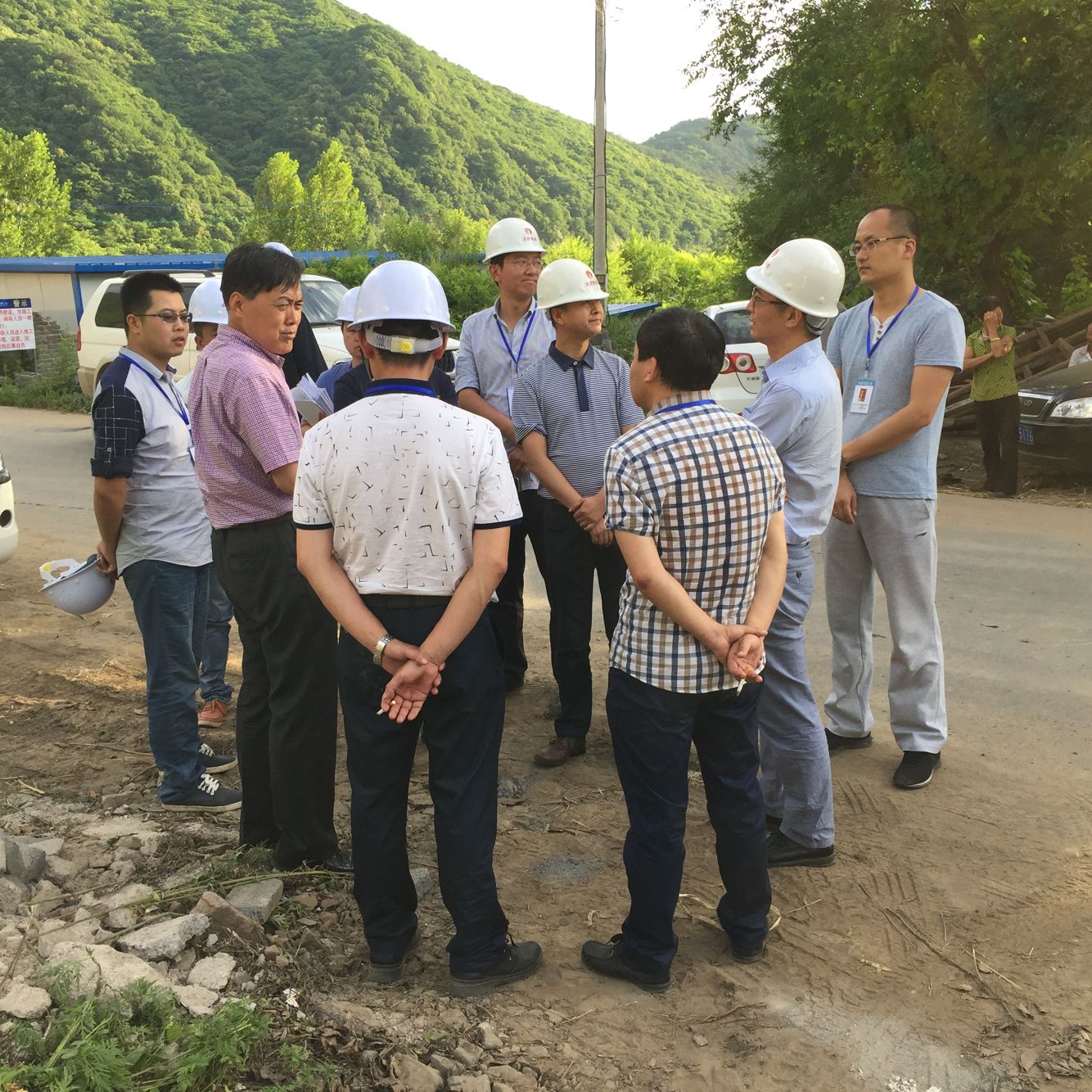 炎炎烈日,王總一行分別對(duì)項(xiàng)目正在施工的混凝土拌合站、預(yù)制梁場(chǎng)、葦沙河大橋、砬子溝隧道、灣灣川隧道等控制線工程進(jìn)行全面視察,對(duì)各個(gè)工區(qū)現(xiàn)場(chǎng)做出指示。王總著重提出,要保障葦沙河大橋的防汛措施完備,隧道施工現(xiàn)場(chǎng)的進(jìn)洞施工人員安全防護(hù)到位。
